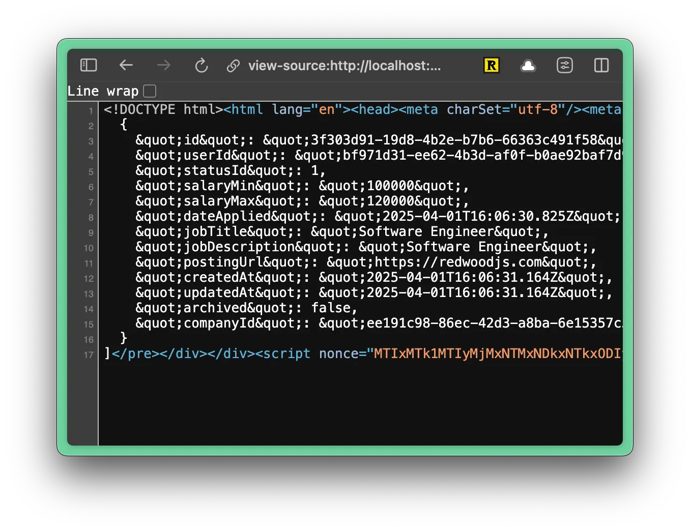Also, if you right click on the page and select View Source, you’ll see that the data is being rendered directly on the page.