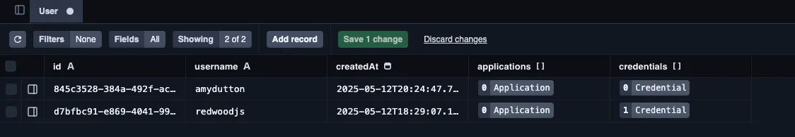 npx prisma studioPrisma Studio should now be available at http://localhost:5555. From here, you can create, read, update, and delete records.